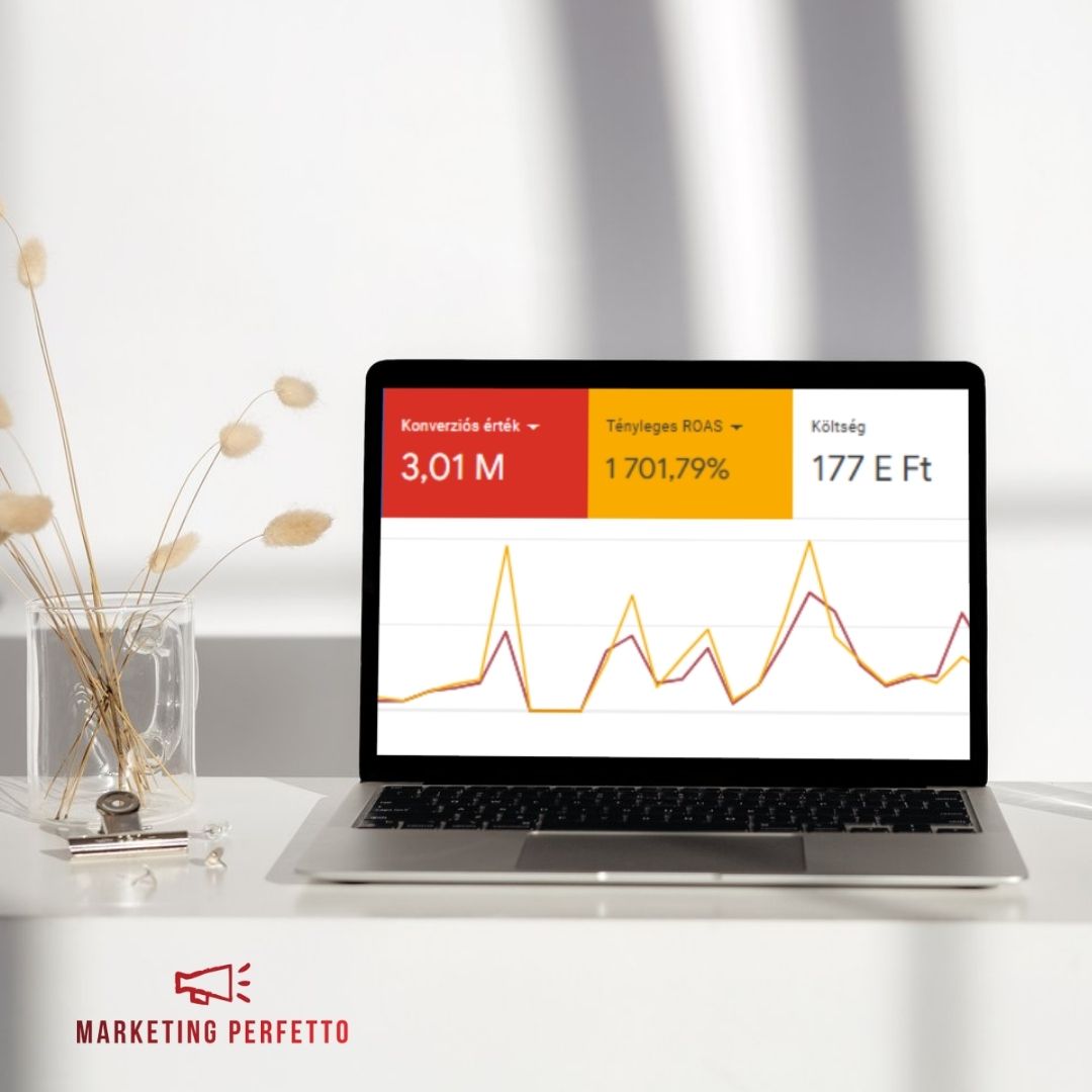 A 2024-es karácsonyi időszakban az egyik ügyfelem, egy nagyobb könyváruház kampányán keresztül sikerült 17-es ROAS-t elérnünk – vagyis minden elköltött 1 Ft hirdetési költség 17 Ft bevételt hozott vissza. Ez nem véletlen: a részletes elemzés, a folyamatos optimalizálás és a személyre szabott stratégia eredménye.